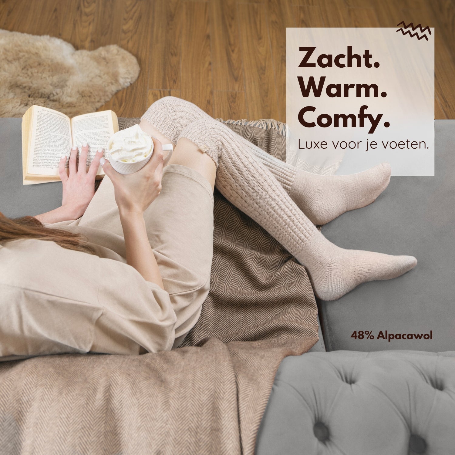 Premium Alpaca Wool: Our socks are carefully crafted from baby alpaca wool, known for its unmatched softness, durability and hypoallergenic properties. The wool is carefully selected to ensure maximum comfort and insulation, making these socks ideal for colder seasons or cozy nights indoors.