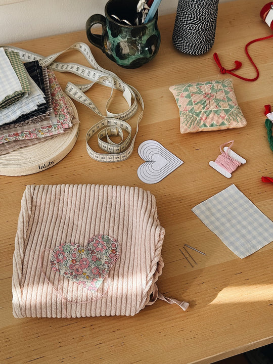 ✨ Inclusief stoffenpatches uit Lalaby-reststoffen (green check, beige gingham & pink betsy)