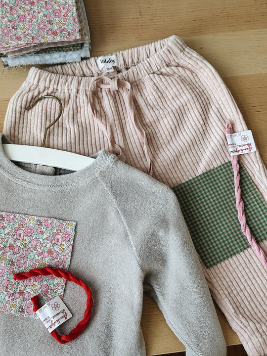 Met de Lalaby Repair Kit Pink Mix geef je je favoriete Lalaby-stukjes een tweede leven en voeg je een persoonlijk accent toe. Of je nu een klein gaatje wilt herstellen, een knie wilt verstevigen of een charmante geborduurde detail wilt maken, deze kit bevat alles wat je nodig hebt om met liefde voor je kleding te zorgen.