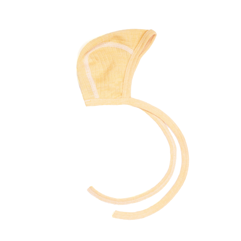 Cosilana Mütze aus Wolle/Seide/Baumwolle mit Schleife - Gelb