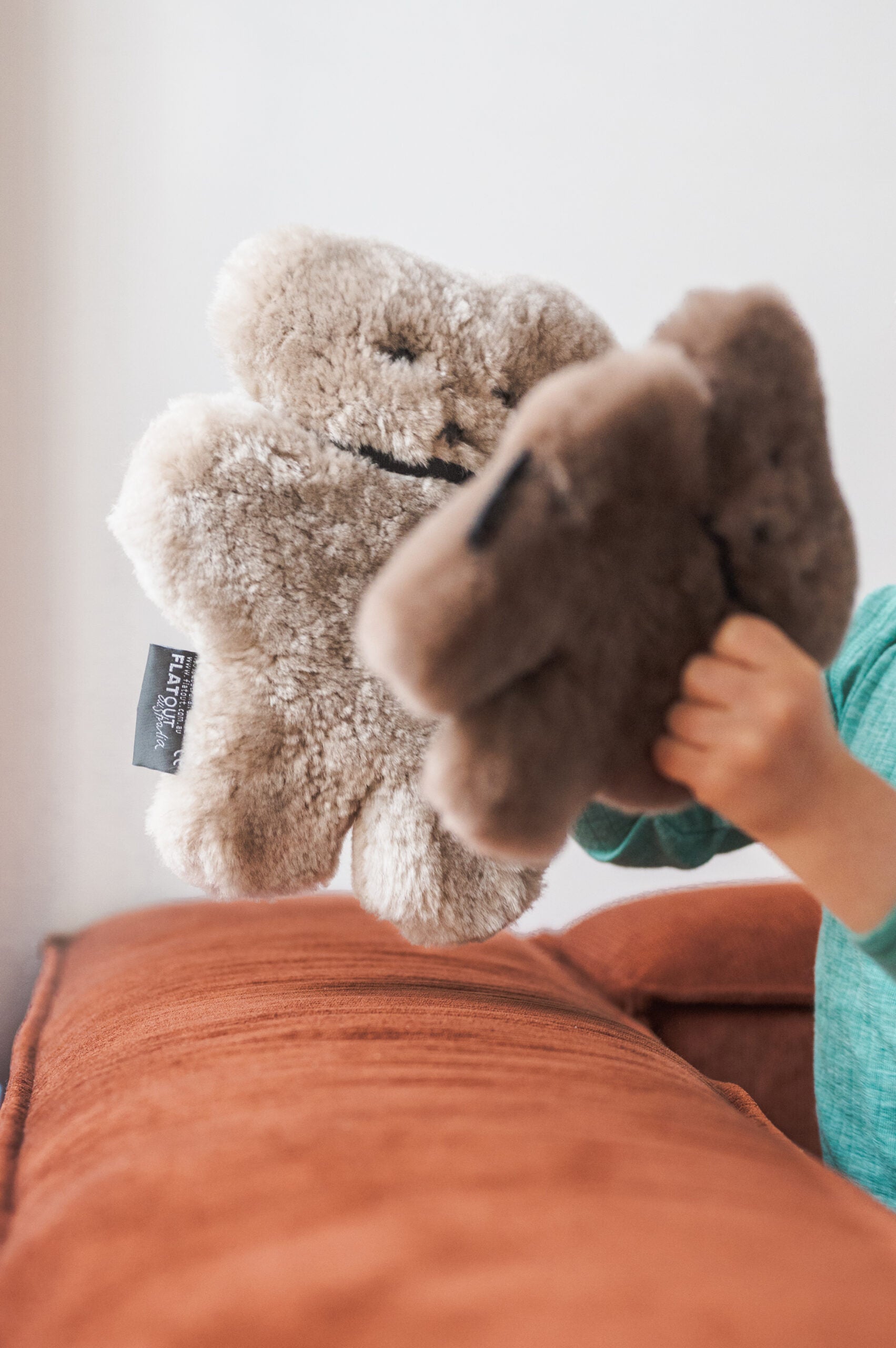 So weich, dass man ihn am liebsten für sich behalten möchte. Der originale FLATOUTbear in Latte ist nicht nur ein Kuscheltier, sondern ein tröstender Freund aus 100 % australischem Schaffell. Flach, kuschelig und perfekt zum Einkuscheln – oder einfach überallhin mitnehmen.