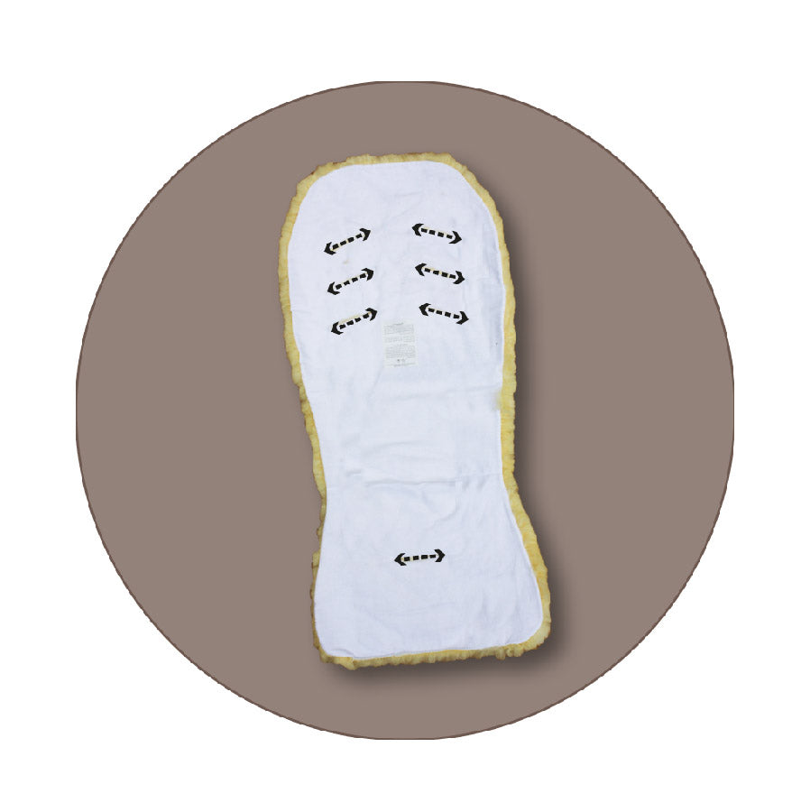 Die Wolle ist ca. 30 mm lang: genau richtig, um sich wunderbar weich anzufühlen, ohne zu dick oder flauschig zu werden. Das Fell ist natürlich temperaturregulierend – warm im Winter, kühl im Sommer. Und dank der universellen Aussparungen für 5-Punkt-Gurte passt es in fast alle Kinderwagen und Autositze.