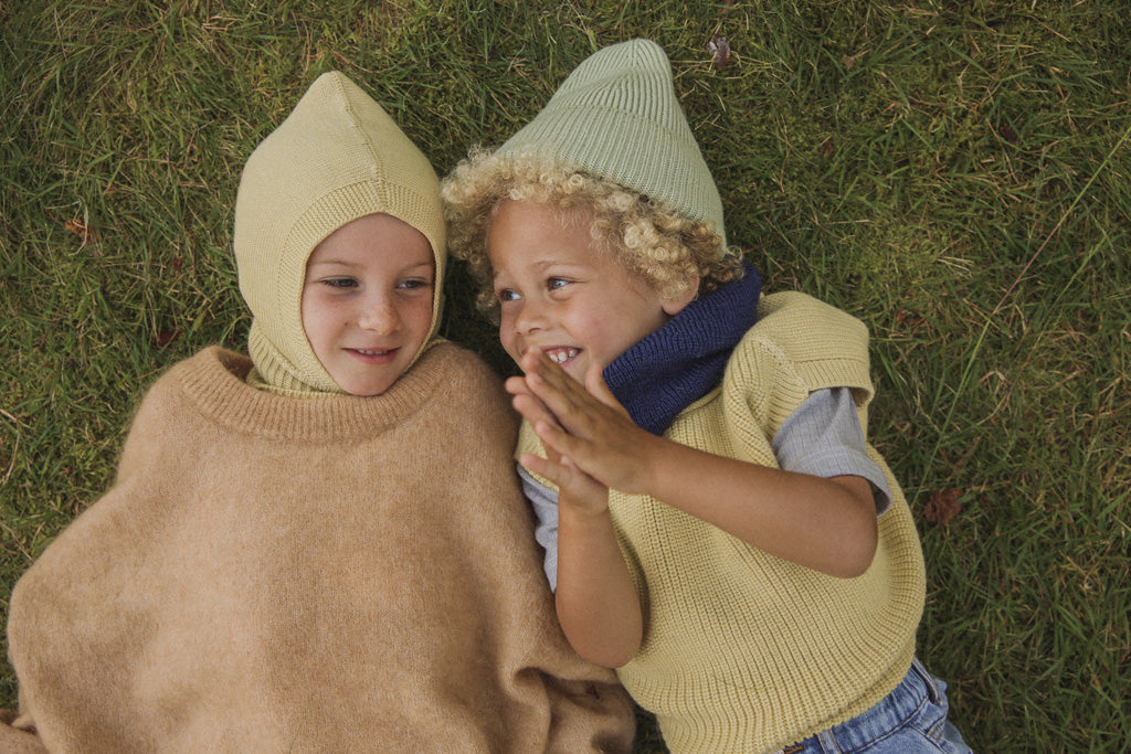 Die Sturmhaube Eddy besteht aus 100 % extrafeiner Merinowolle und ist daher kratzfest und für empfindliche Haut geeignet. Der gerippte Halsausschnitt sorgt für zusätzliche Wärme und Komfort. Erhältlich in zwei Größen: für Kinder von 1–3 und 3–5 Jahren.