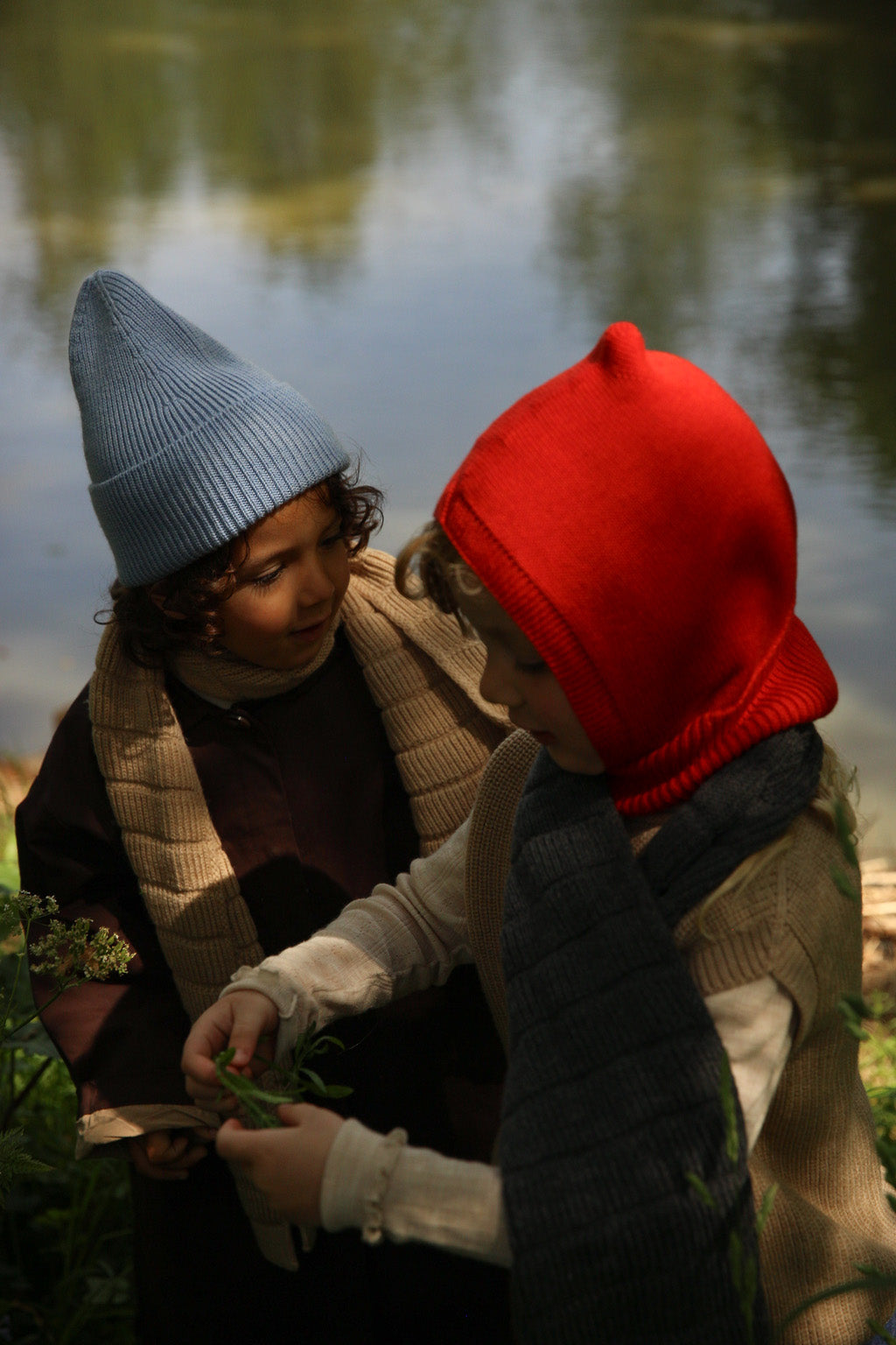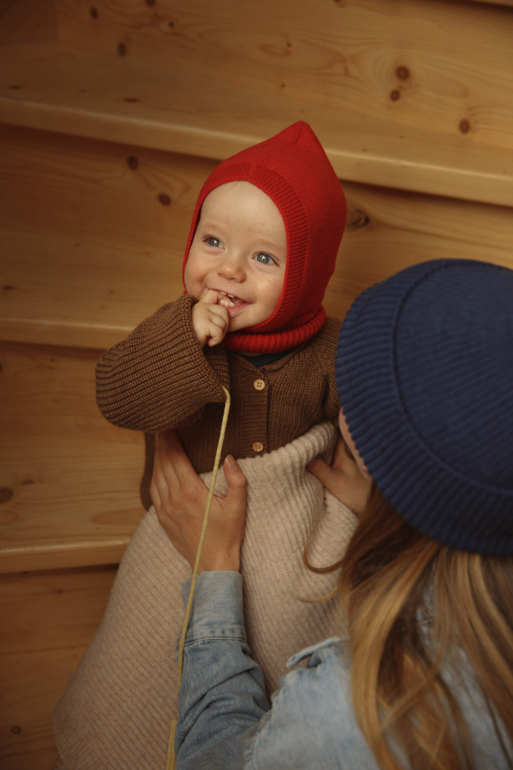 Die Sturmhaube Eddy besteht aus 100 % extrafeiner Merinowolle und ist daher kratzfest und für empfindliche Haut geeignet. Der gerippte Halsausschnitt sorgt für zusätzliche Wärme und Komfort. Erhältlich in zwei Größen: für Kinder von 1–3 und 3–5 Jahren.