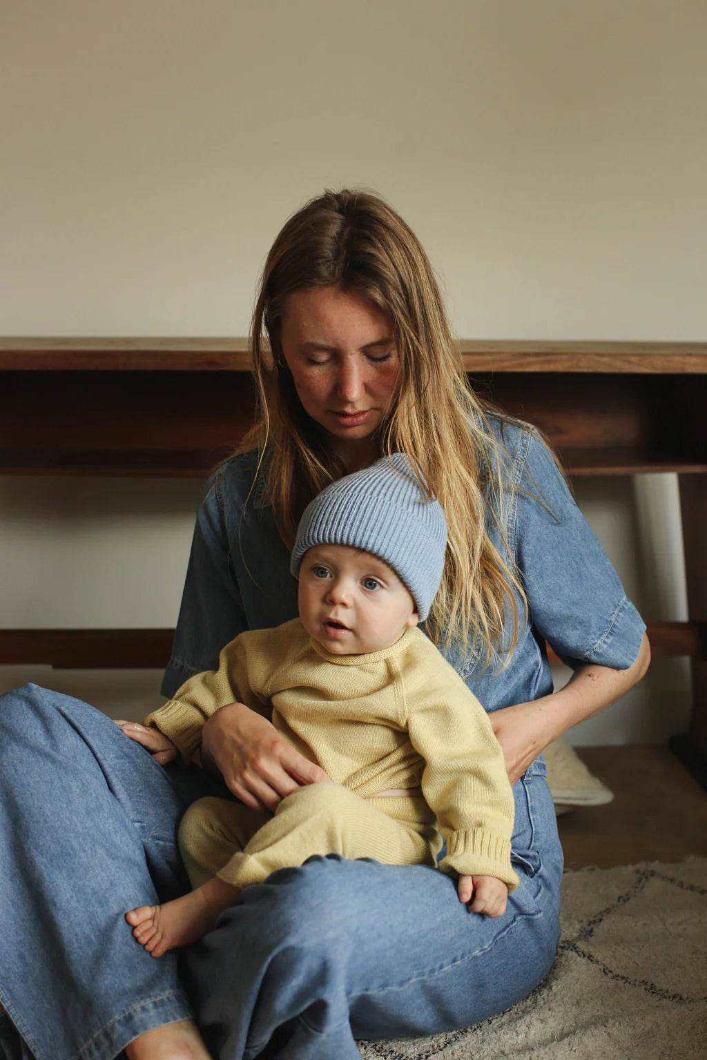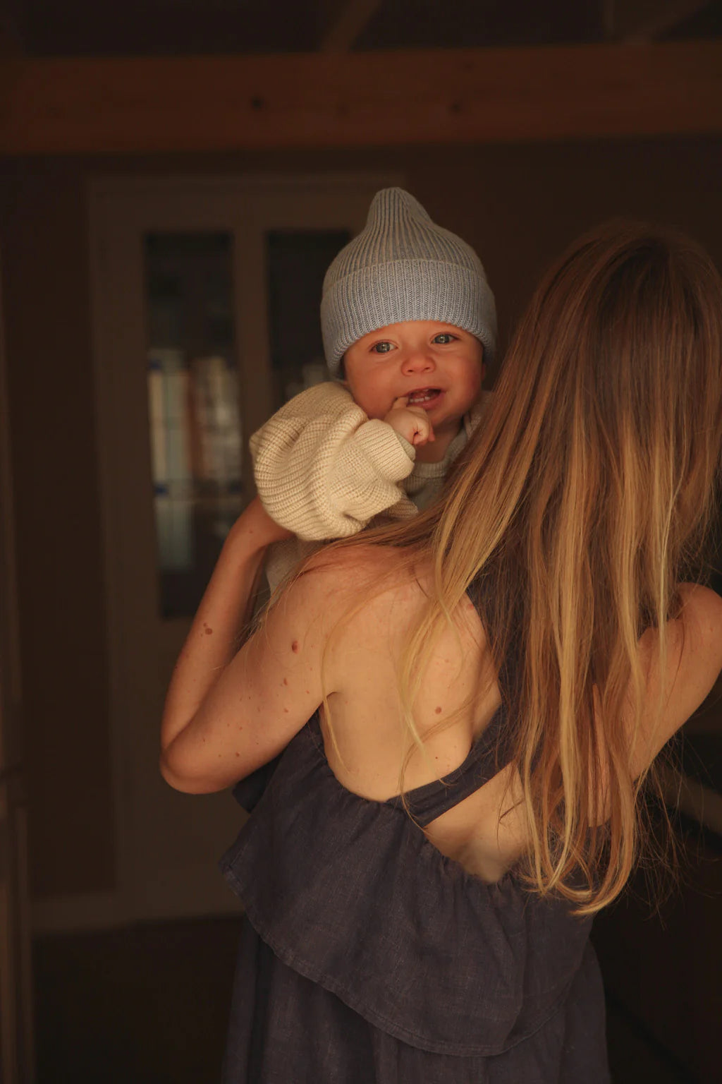 Weich, zeitlos und perfekt für jeden Tag: Die Fonzie Beanie in Hellblau ist eine tolle Unisex-Mütze für Kinder. Die hellblaue Farbe ist dezent und ruhig, perfekt für kleine Abenteurer, die es warm und stylisch mögen. Dank des Rippstricks und des nahtlosen Designs sitzt die Mütze bequem und bleibt an Ort und Stelle – auch bei Bewegung.