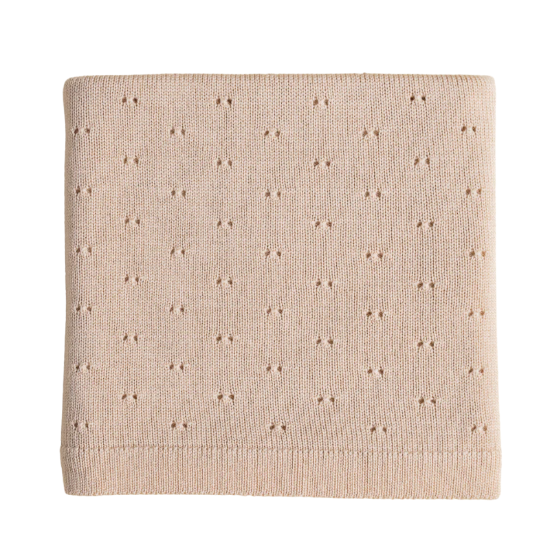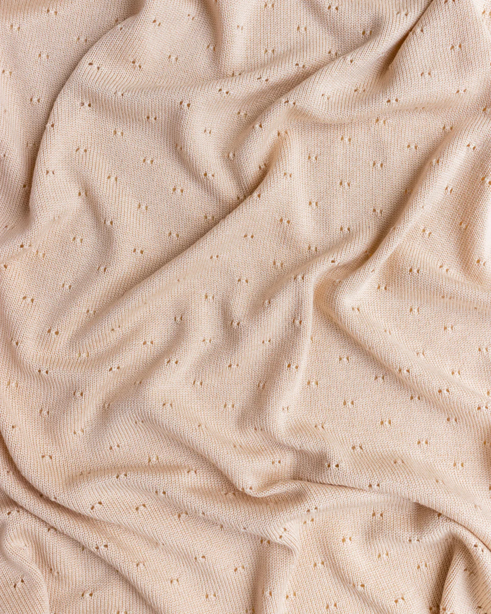 Die Bibi-Decke in Hafer ist ein dezenter, natürlicher Farbton, der zu jeder Einrichtung passt – egal, ob Sie ein ruhiges Kinderzimmer haben oder gerne kombinieren. Das zarte Lochmuster verleiht der Decke einen klassischen Look, während ihre mittlere Dicke für Komfort zu jeder Jahreszeit sorgt.