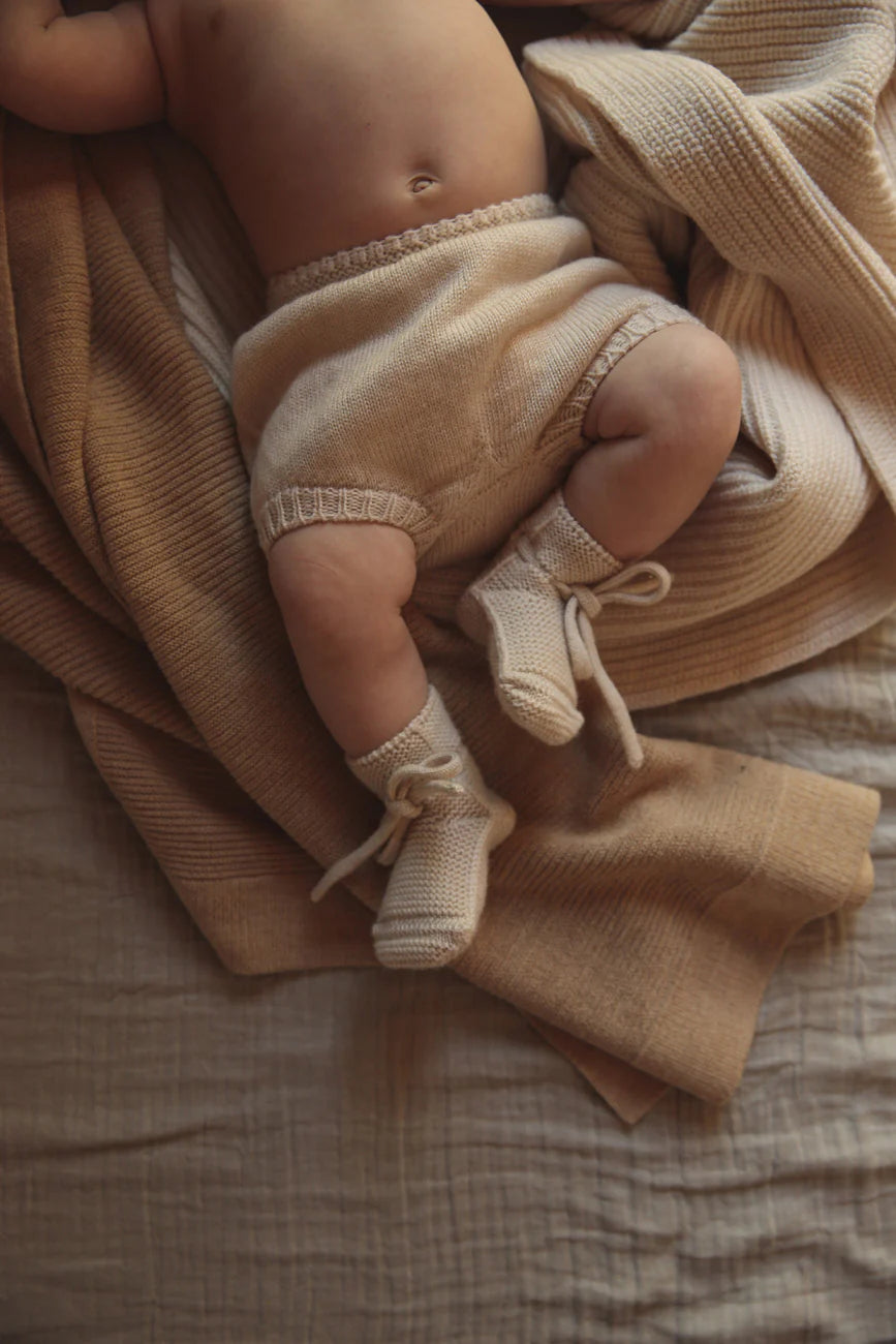 Mit seiner praktischen Größe von 70 x 95 cm eignet sich Gust ideal für die Verwendung im Kinderbett, im Kinderwagen oder zum Entspannen auf der Couch zu Hause 🧸. Die sanfte Sandfarbe passt wunderbar zu jedem Stil und schafft sofort eine entspannende Atmosphäre.