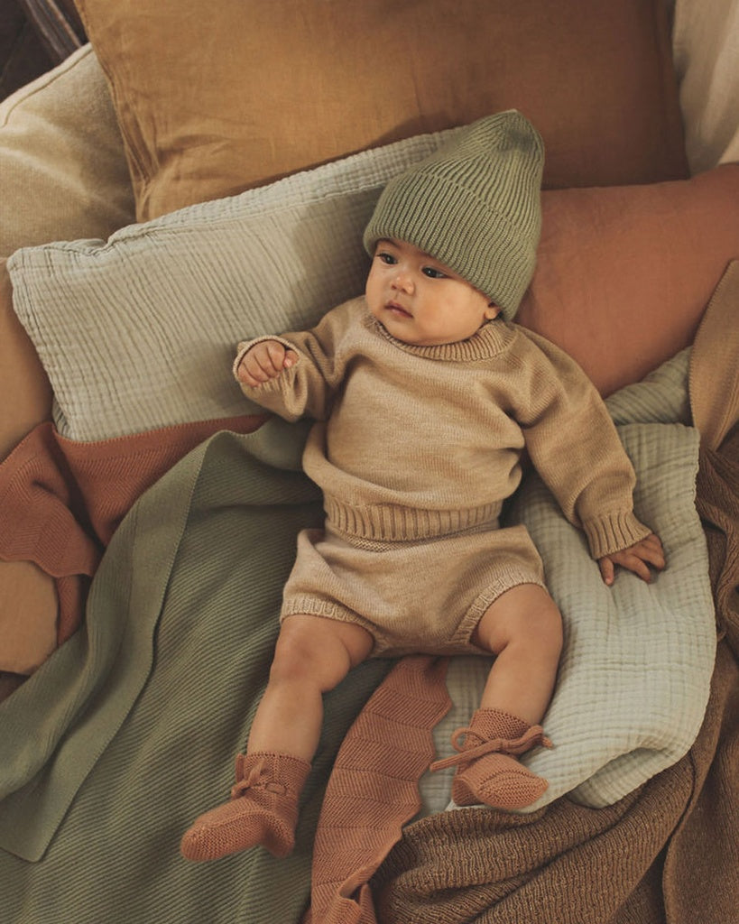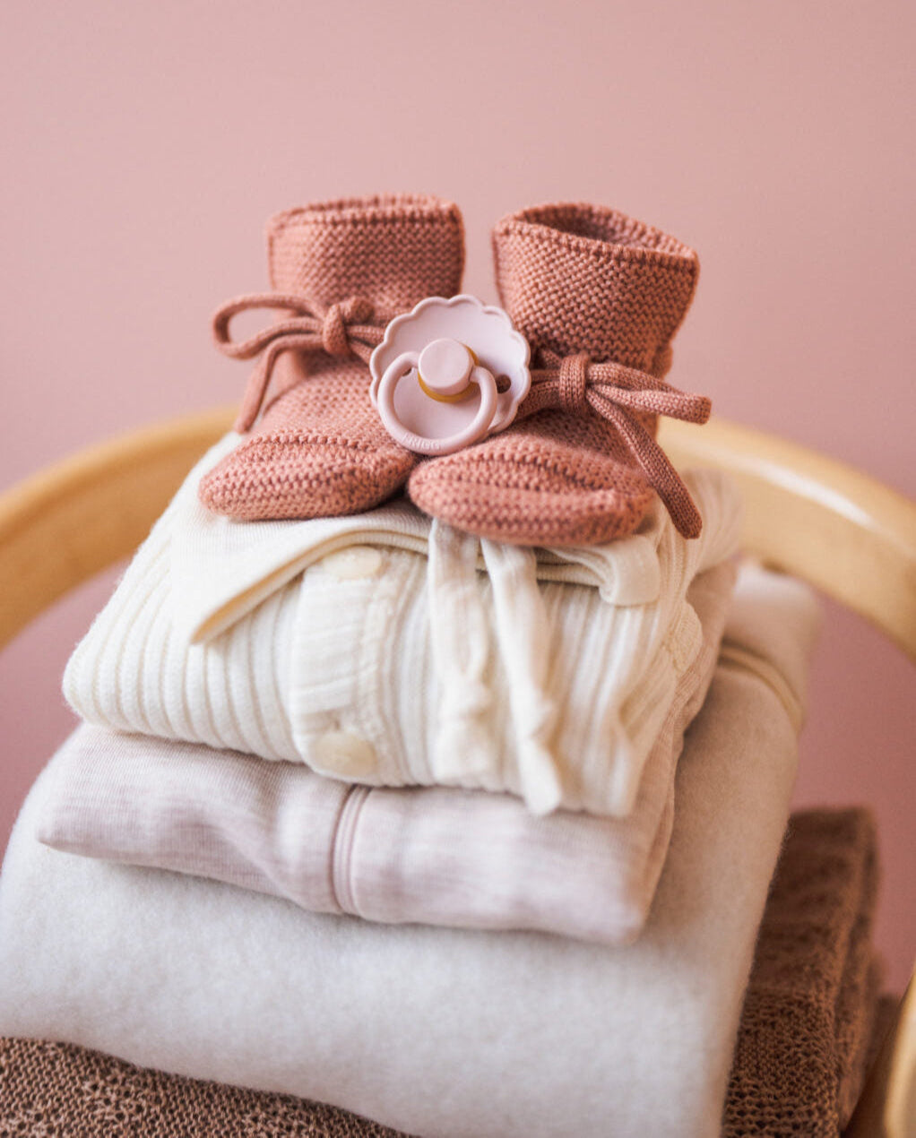 Aus 100 % extrafeiner italienischer Merinowolle: atmungsaktiv, weich und perfekt für die empfindliche Babyhaut. Der Kordelzug sorgt dafür, dass die Schühchen nicht verrutschen – ideal für zu Hause und unterwegs.