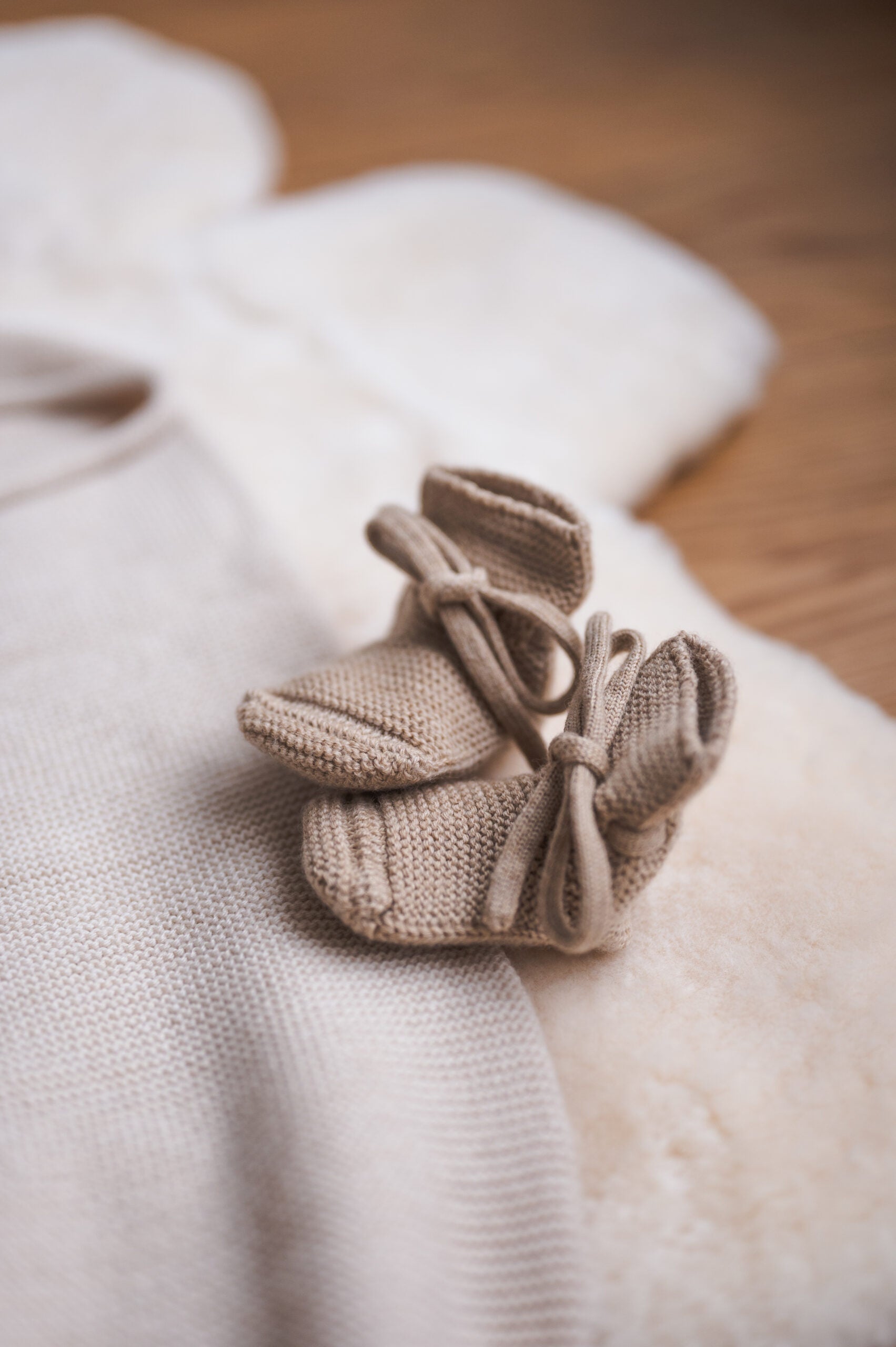 Hergestellt aus 100 % extrafeiner italienischer Merinowolle, mit einem praktischen Kordelzug für sicheren Halt. Egal, ob Ihr Kleines schläft, krabbelt oder getragen wird, diese Stiefelchen erfüllen ihren Zweck problemlos.