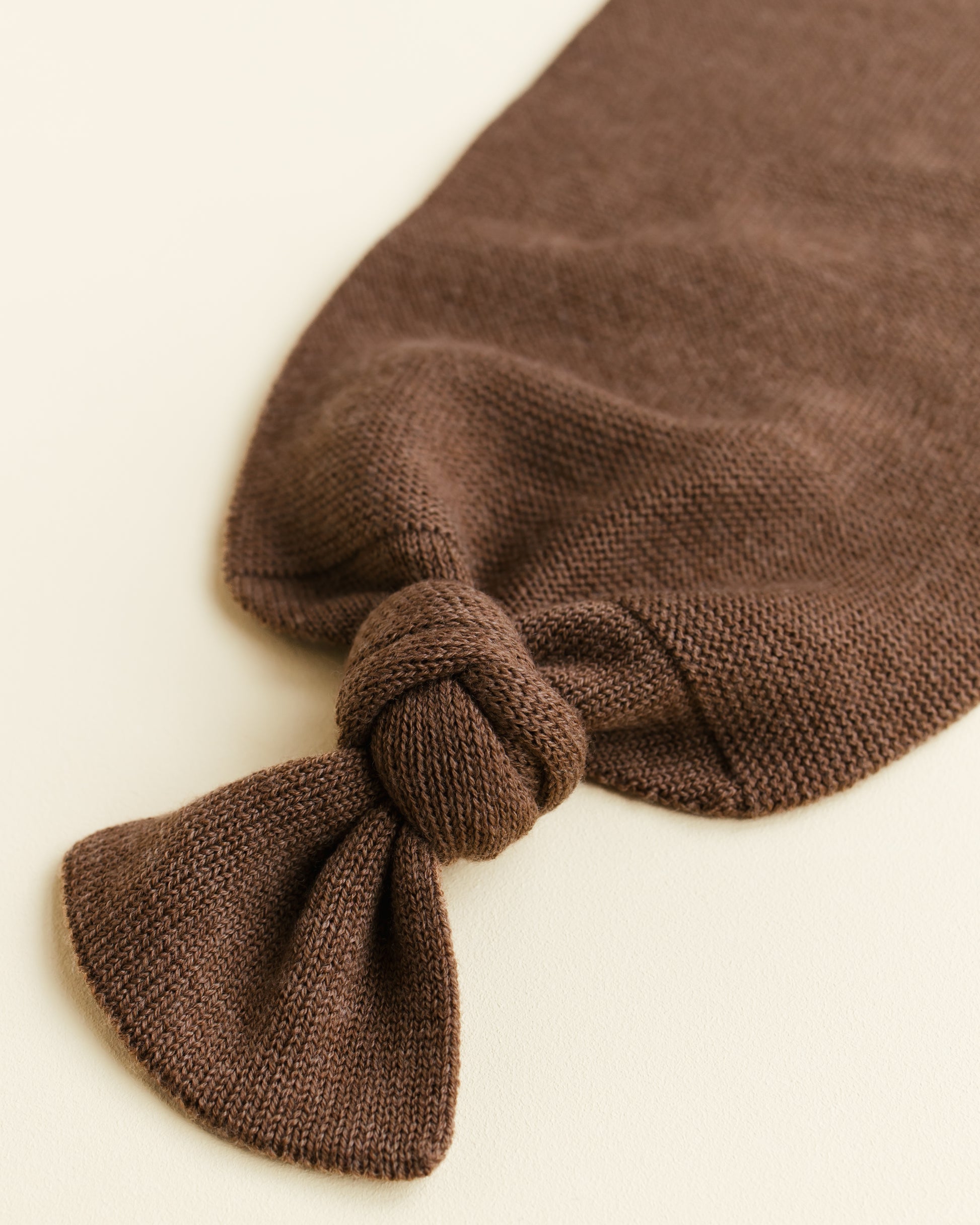 Dieser Kokon aus 100 % extrafeiner Merinowolle fühlt sich wie eine zweite Haut an – atmungsaktiv, temperaturregulierend und seidig weich auf der zarten Haut Ihres Babys.