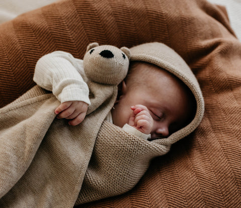 Ein Neugeborenes braucht vor allem eines: Geborgenheit. Der Hvid Kokon in Sand fühlt sich wie eine warme Umarmung an. Gestrickt aus 100 % extrafeiner Merinowolle, soll er Ihrem Baby ein sicheres, geborgenes Gefühl geben – genau wie im Mutterleib.
