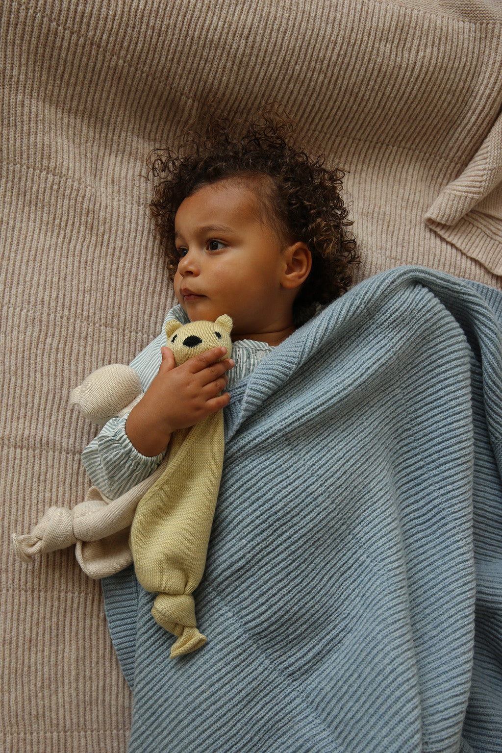 De Hvid Gaston is een dikke, ribgebreide familiedeken van 100% merino lamswol. Deze deken is perfect voor knusse herfstavonden of frisse lentedagen. Of je 'm nu over je bed legt, in de kinderwagen stopt of om jezelf heen slaat op de bank: Gaston biedt altijd comfort.