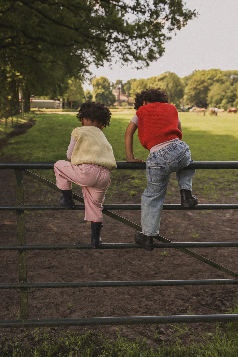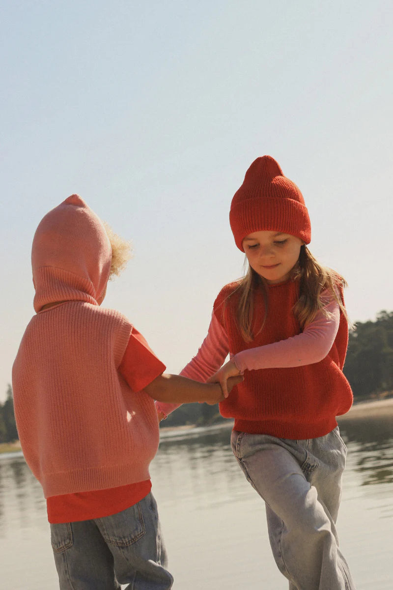 Für kleine Charaktere mit etwas Mumm. Der Hvid Harvey Cardigan in Rot ist ein warmer, tiefer Rotton mit klassischem Look. Nicht grell, aber voller Leben. Eine Farbe, die gleichermaßen gut zu Basics und Prints passt und jedem Outfit eine besondere Note verleiht.