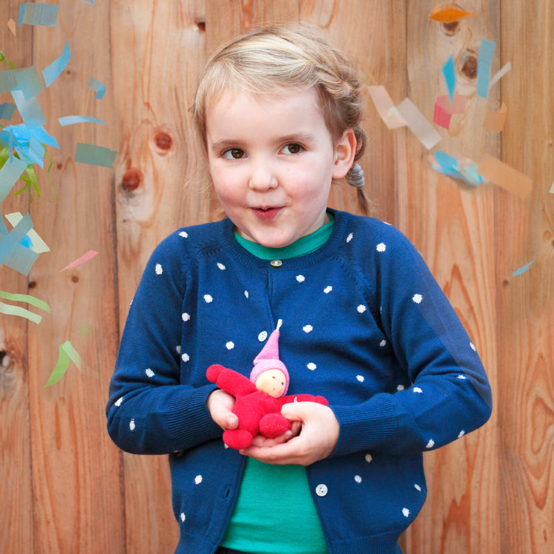 Der Wichtel Rot ist eine starke und warme Puppe aus der Nänchen Natur Kollektion. Mit seiner tiefroten Farbe und dem süßen, schlichten Gesicht strahlt er Geborgenheit aus. Perfekt für Babys, die es lieben, etwas Weiches in den Händen zu halten – sei es zum Kuscheln, Nuckeln oder einfach, um einen vertrauten Freund in der Nähe zu haben und sich zu trösten.